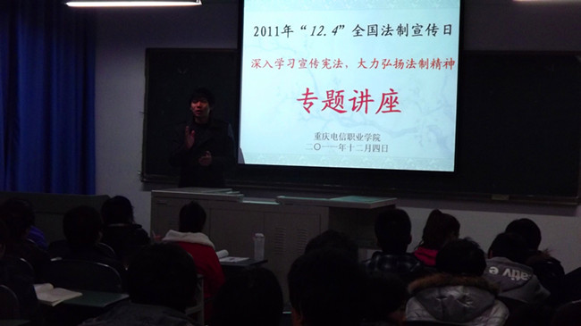 12月4日下午,“深入学习宣传宪法,大力弘扬法治精神”专题讲座在我校星湖八阶举行。我校辅导员廖良刚老师为电子信息工程系、软件工程与服务外包系全体学生讲解专题知识。