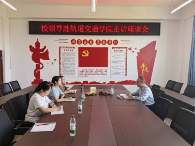 9月25日下午,重庆电信职业学院副校长皇甫涛赴轨道交通学院走访调研,此次调研旨在全面了解轨道交通学院的各项工作情况,并为学院的发展提供宝贵的指导意见。轨道交通学院院长王朝容、党支部副书记夏霁雪、团总支书记杨鑫、办公室副主任于承慧参加座谈会。