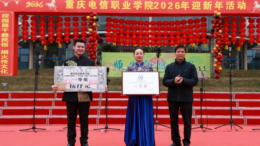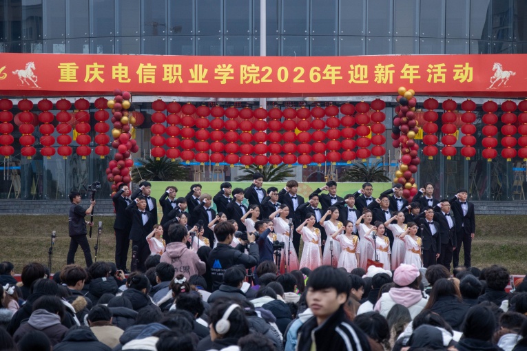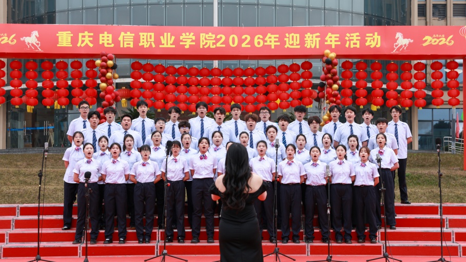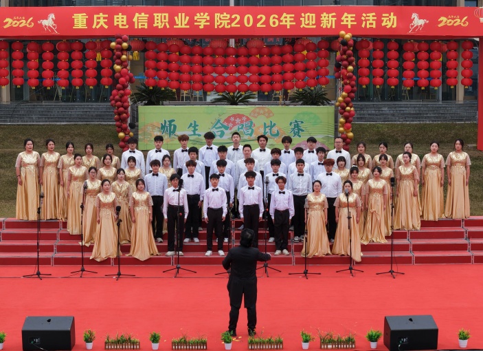 冬日暖情漫校园,欢歌嘹亮贺新岁。12月29日,重庆电信职业学院2026年迎新年系列活动“歌声聚情·共迎新年”师生合唱比赛在精诚广场圆满举行。党委副书记、校长曹继建,副校长皇甫涛,党委副书记、副校长代敏,校长助理周华西等校领导与全体教职工、1300余名学生代表齐聚现场,共赴这场以歌传情、以声聚力的美育盛宴,用激昂旋律奏响新时代职业教育的奋进新篇。